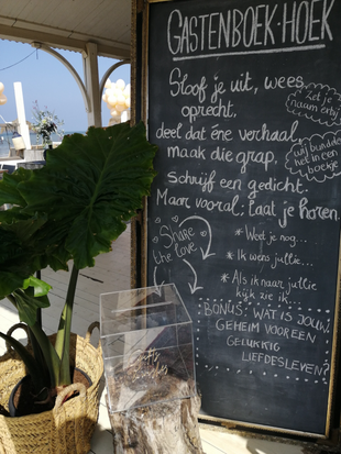 Wij zorgen ervoor dat het een heuse ervaring wordt in het gastenboek te schrijven en prikkelen de genodigde hiervoor even de tijd en de aandacht te nemen. Wij komen naar de bruiloft met onze retro-uitstalling: typemachines, pen en inkt en een krijtbord en nodigen de gasten uit om hun wensen, herinneringen en harten te verwoorden.